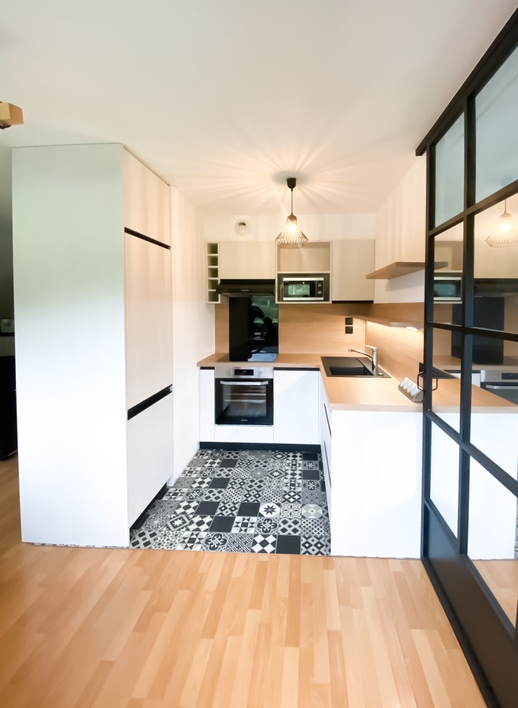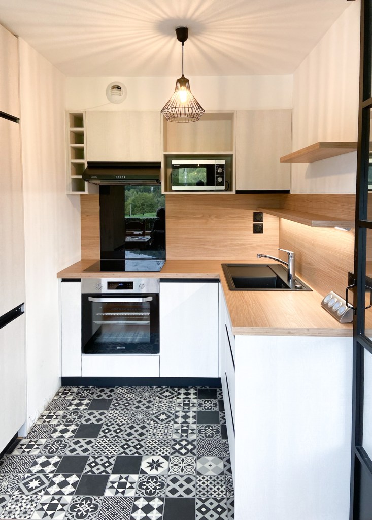 Un petit espace peu parfaitement accueillir une jolie cuisine pleine de rangements ! Navigation des articles Précédent Article précédent : Aménagements sous les comblesSuivant Article Suivant: Bibliothèque