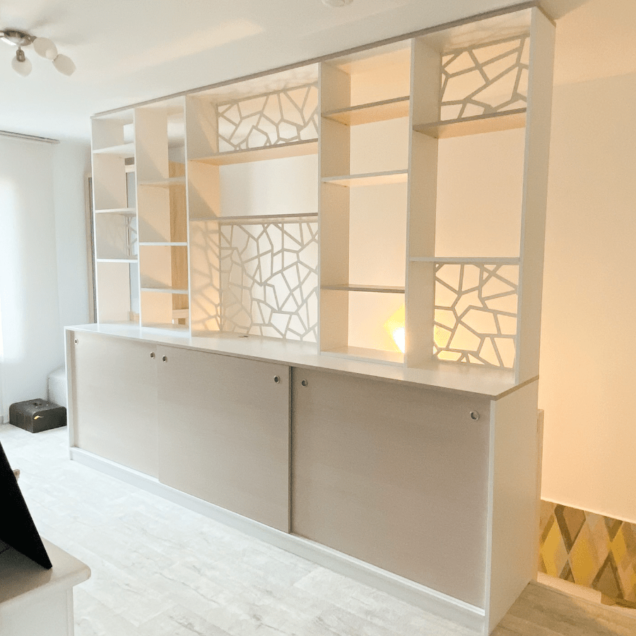 Conception et fabrication d’un meuble garde-corps.Design : Jolies babiolesTôle décorative : Racken metal Navigation des articles Précédent Article précédent : CuisineSuivant Article Suivant: Cuisine