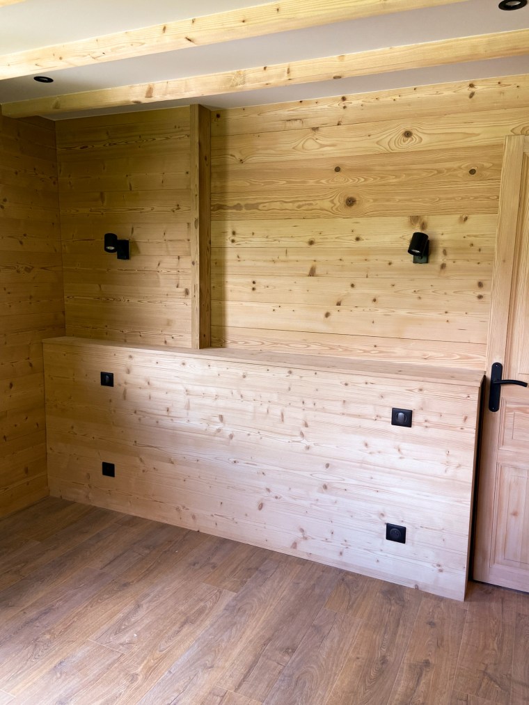 Un espace refait à neuf avec pose de lambris, création de placards, cuisine et tête de lit sur-mesure Navigation des articles Précédent Article précédent : Cuisine lumineuse et pratique